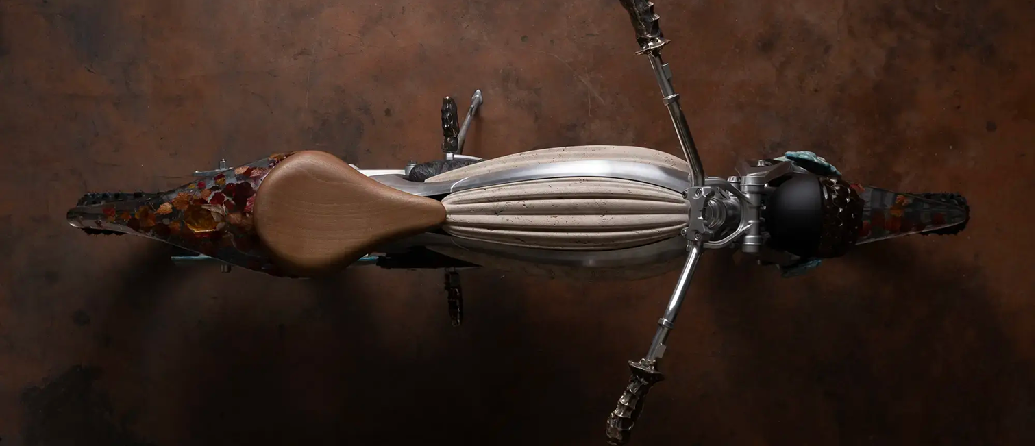 Created in collaboration with Mattia and Flying Flea, each material chosen has a purpose beyond just aesthetics but connecting the motorcycle to nature in elegant, beautiful fashion.